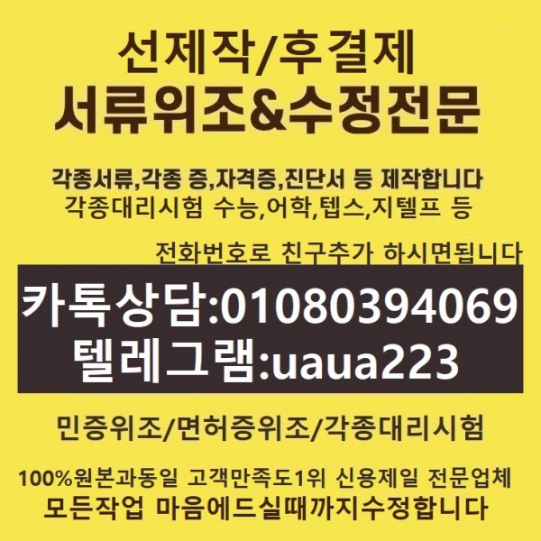 [위조수정]종합병원진단서제작&편입대리시험↔톡상담친추+01080394069텔레uaua223고용보험자격이력내역서위조#토플대리시험&…