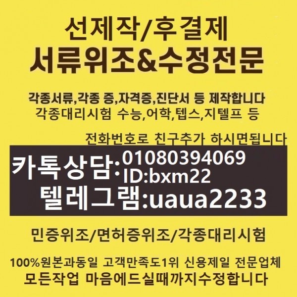 - 다음글호적등본위조N토플대리시험ш톡친추상담01076826041텔레awk899신분증제작А신분증위조А콘서트티켓위조А토익대리시험А서류위조업체А면허증위조А민증위조А민증제작А서류위조 25.12.30